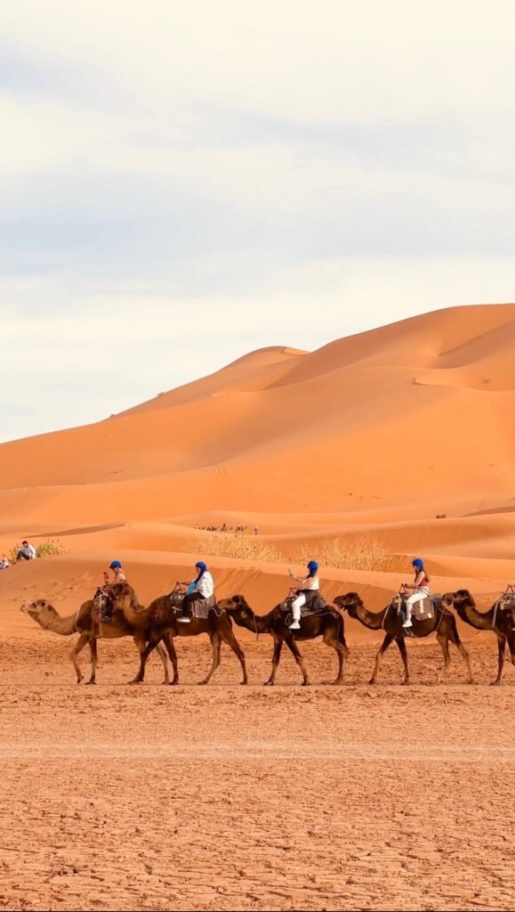 Merzouga is the gateway to the highest sand dunes in Morocco. A true jewel of the Sahara, this Berber village offers a striking natural spectacle where the sand changes color with the rhythm of the sun. It is here that the adventure begins, between luxury bivouacs and centuries-old nomadic traditions.